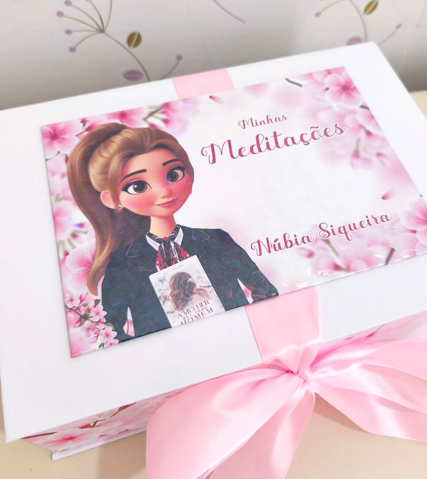 Caixa Personalizada com Caderno Minhas Meditações + Devocional + Bloquinho de anotações + Caneca + Marcador Magnético
